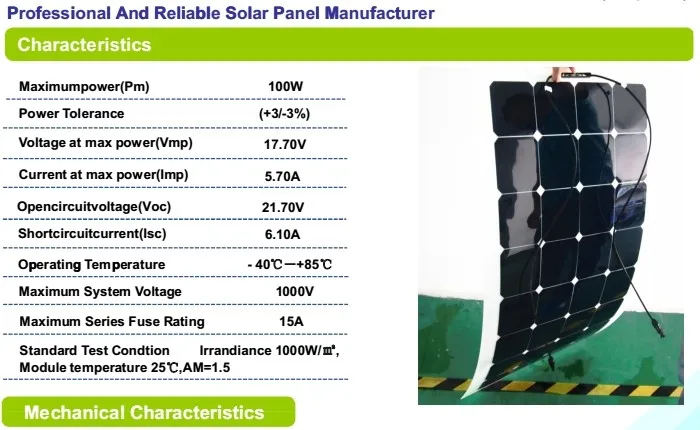 1. Sunpower flexible solar panel from 18W to 300W,it is designed to charge 12V-48V batteries.